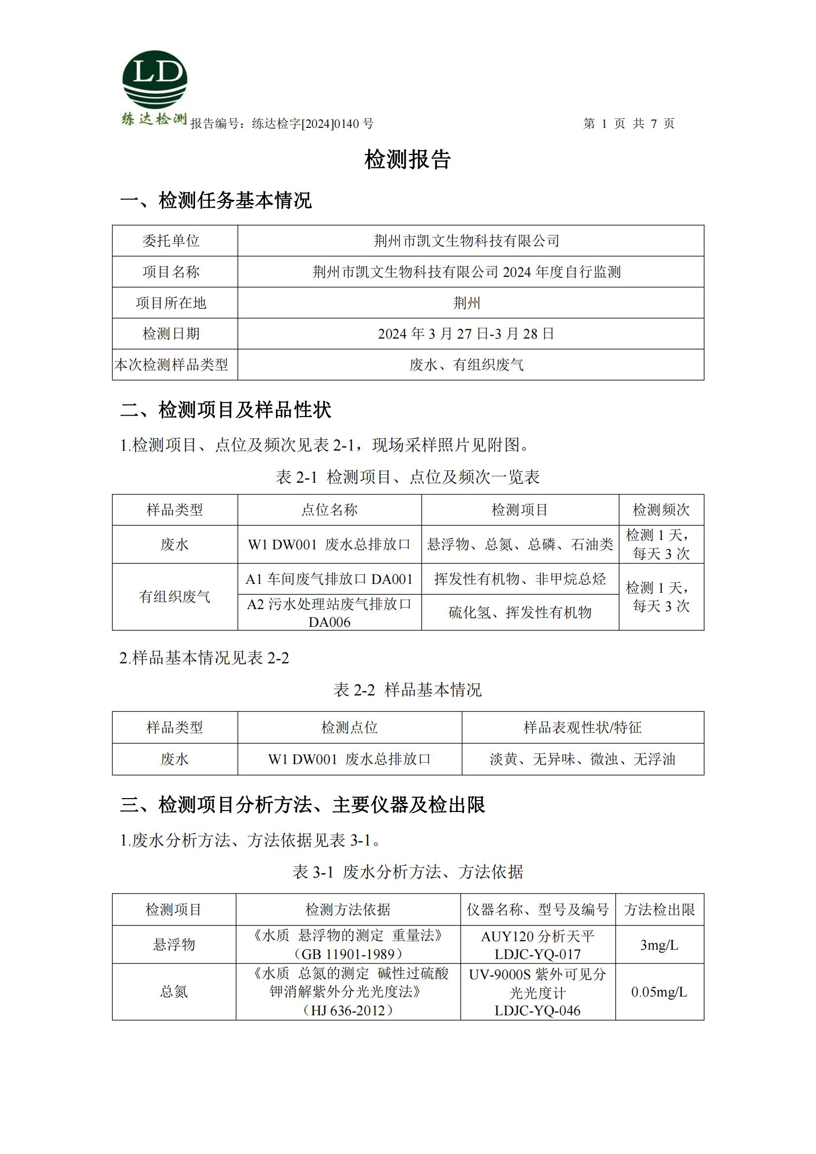 ZC23-053-8-0140荊州市凱文生物科技有限公司2024年度自行監(jiān)測(cè)(廢水+有組織)3月(1)