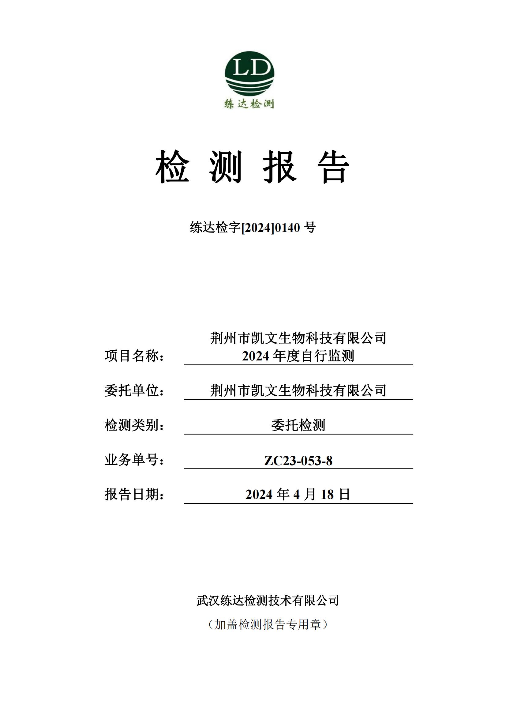 【概要描述】ZC23-053-8-0140荊州市凱文生物科技有限公司2024年度自行監(jiān)測(cè)(廢水+有組織)3月(1)